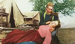 Rio Grande is a 1950 American romantic Western film[3][4] directed by John Ford and starring John Wayne and Maureen O'Hara. It is the third installment of Ford's "Cavalry Trilogy", following two RKO Pictures releases: Fort Apache (1948) and She Wore a Yellow Ribbon (1949). Wayne plays the lead in all three films, as Captain Kirby York in Fort Apache, then as Captain Nathan Brittles in She Wore a Yellow Ribbon, and finally as a promoted Lieutenant Colonel Kirby Yorke in Rio Grande (scripts and production billing spell the York[e] character's surname differently in Fort Apache and Rio Grande). Rio Grande's supporting cast features Ben Johnson, Claude Jarman Jr., Harry Carey Jr., Chill Wills, J. Carrol Naish, Victor McLaglen, Grant Withers, the Western singing group the Sons of the Pioneers and Stan Jones.