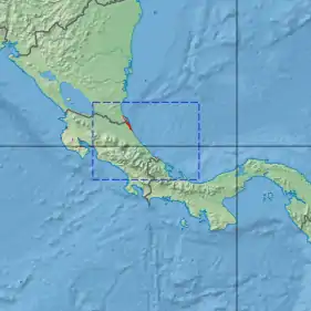 The Rio Negro-Rio San Sun mangroves ecoregion (WWF ID:NT1431) covers a series of small of discontinuous mangrove forests on the Caribbean Sea coast of Costa Rica, from a small portion inside the border with Nicaragua in the west to the border with Panama in the east. The coast on this stretch is a flat, alluvial plain, and mangroves are only a small part of a diverse patchwork of local habitats including swamps, mixed rainforests, coastal lagoons, sea grass beds, and sandy beaches. Much of the territory is "blackwater river" in character - slow-moving channels in wooded swamps with water stained by decayed matter. These mangroves are periodically damaged by hurricanes, such as in 1988 from Hurricane Joan, but are able to regenerate.[1][2][3]