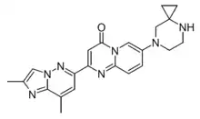 The compound is a pyridazine derivative that modifies the splicing of SMN2 messenger RNA to include exon 7,[12][9][13] resulting in an increase in the concentration of the functional SMN protein in vivo.[14]