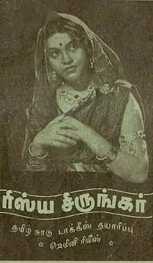 Rishyasringar is a 1941 Tamil-language film directed by S. Soundararajan. It stars Vasundhara Devi, Ranjan and S. Balachander. The music score was provided by the Sarma Brothers and V. Nagayya. Lyrics were penned by Papanasam Rajagopala Iyer.[1]