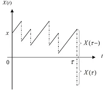 where the time of ruin is with the convention that . This can be computed exactly using the Pollaczek–Khinchine formula as[6] (the ruin function here is equivalent to the tail function of the stationary distribution of waiting time in an M/G/1 queue[7])