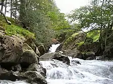 Ritson's Force is a set of waterfalls in the valley of Mosedale, in the English Lake District.[1][2] It is also the river that leads past the Wasdale Head Inn and the Great Gable Brewing Company. The hills nearby include Sca Fell and Scafell Pike, England's two highest mountains, and Great Gable, home to British climbing. Ritson's Force and Wasdale Head are in the Lake District National Park which is in Cumbria, an English county that borders with Scotland.