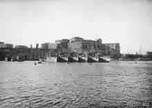 Parramatta and Yarra were the first new ships launched for the Australian navy.[5][11] After completion, the two vessels were temporarily commissioned into the Royal Navy for the delivery voyage to Australia, although they reverted to the control of the Commonwealth Naval Forces on arrival in Broome.[5] Warrego, however, was built up to launch condition, then disassembled, transported to Australia by ship, and rebuilt at Cockatoo Island Dockyard: the reasoning behind this was to raise the standard of the Australian shipbuilding industry by giving Cockatoo Island hands-on experience in warship construction.[12][13] The second batch of three warships were all built at Cockatoo Island.[9]