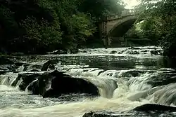 The River Almond (Scottish Gaelic: Abhainn Amain) is a river in Lothian, Scotland. It is approximately 28 miles (45 km) long, rising at Hirst Hill in Lanarkshire near Shotts, running through West Lothian and draining into the Firth of Forth at Cramond, Edinburgh.[1] The name Almond/Amon is simply old Celtic for "river".[2]