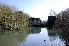 This mill was built c.1807 and was powered by steam and water. The mills were worked by Messrs, Turner & Co from at least 1862 to post 1882 and produced paper which Messrs. De La Rue used for printing colonial postage stamps. Latterly a 9 feet (2.74 m) diameter by 4 feet (1.22 m) wide breastshot waterwheel was used to drive bellows for the steam engine. There was a tall chimney which was a local landmark but this was demolished in 1997 after a fire.[10][17]