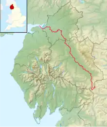 Continuing north, it formed the eastern boundary of Inglewood Forest.[3] It passes close to the ancient stone circle known as Long Meg and Her Daughters and through the sparsely populated beef and dairy farming regions of the vale of Cumbria on the Solway Plain. After flowing through Wetheral, where it is crossed by Corby Bridge, a Grade I listed railway viaduct of 1834, it merges with the River Irthing from the east, followed by the River Petteril and River Caldew from the south, as it winds through Carlisle.