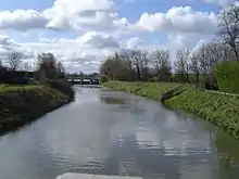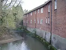 Close to its start, Ember Mill stood on an island in the Ember reached from a footbridge at the end of Orchard Lane by Imber Court, Thames Ditton. The mill was demolished around 1837 and the sluices and waterfalls on either side are all that remain to indicate the site.[2] The mill was originally a corn mill but was later used for manufacturing brass and iron wire.[3] This part of the Ember is bypassed by the new channel of the flood prevention scheme, but a small flow runs into the old course to keep it looking largely as it used to.[4]