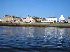 The Universal Hall is an arts and conference centre at Findhorn Ecovillage that enjoys a stained glass window by American artist James Hubbel.[56] At the heart of the village of Findhorn are the 1739 Crown and Anchor Inn and Findhorn House, the home of the Royal Findhorn Yacht Club, which is an 18th-century house with late 19th-century enlargements.[47]