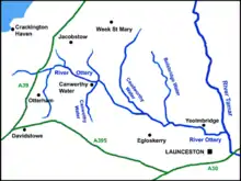 The headwaters of the River Ottery are within the civil parish of Otterham but formerly came under the parish of Forrabury and Minster. In 1311, the rector of that parish wrote: "..the river Ottery takes its rise in this parish and flows to Canworthy Water and so by Yeolmbridge to the river Tamar."[4]