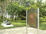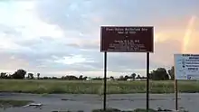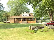 The site was recognized nationally when it was added to the National Register of Historic Places on December 10, 1982. It was officially listed as the River Raisin Battlefield Site (20MR227).[1] In July 1990, the Monroe County Historic Commission and the Monroe County Historic Society opened the River Raisin Battlefield Visitor Center within the site at 1403 East Elm Avenue. The museum contains a few relics from the original battle that were discovered during archeological investigations. The park holds a memorial service every January to commemorate all the soldiers who fought in the Battle of Frenchtown, including the British and Indian soldiers who were allied against the Americans.[10]