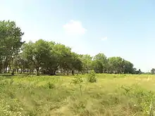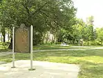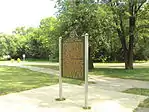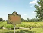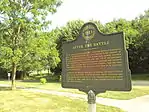 The River Raisin Battlefield Site was listed as a Michigan Historic Site on February 18, 1956, although the exact date at which the park was first organized is unknown. The location of the site is bounded by North Dixie Highway, the River Raisin, Detroit Avenue, and Mason Run Creek.[3][7] The Battle of Frenchtown is so named because it took place in and surrounding the Frenchtown Settlement (1784), on the River Raisin's north bank and within the present-day city limits of Monroe.[8] The area of conflict extended during the three days of battle several miles to the north and south of the current park site. After the battles, Frenchtown was gradually abandoned and the present-day city of Monroe developed from its downtown site 1.5 miles west and on the opposite bank of the River Raisin. The current park area encompasses some 40 acres (16 ha) of undeveloped land on Monroe's east side approximately one-quarter mile (0.4 km) west of Interstate 75. The area contains houses on the outer fringe along East Elm Avenue, and much of the area is occupied by urban development. The River Raisin Paper Company built a large paper mill on the site around 1911, which operated under multiple owners until 1995.[9]