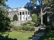 Hackett dreamed of expanding the school into an "American World School" and acquired a new site in Riverdale.[8] In 1948, Gen. Dwight Eisenhower, then president of Columbia University, spoke at a dedication ceremony at the site.[9] Hackett died before his dream was realized, and the property was sold. In 1972, the Boys and Girls Schools were combined.[4] In 1985, the Middle and Upper Schools were consolidated on the Hill Campus and the Lower School moved to the River Campus. Hackett was an organizer of the Guild of Independent Schools of New York City, and an organizer and president of the Adirondack Mountain Club.[10]