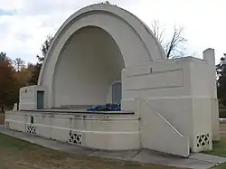 The Riverside Park Bandshell is a bandshell located in Riverside Park in Murphysboro, Illinois. The concrete bandshell was built in 1938–39 by the Works Progress Administration and the Murphysboro Park District. Riverside Park was opened in 1907; it was originally known as Buster Brown Park, as it was initially owned by the Brown Shoe Company. The park began hosting Murphysboro's annual 4th of July celebration in 1927, and the bandshell became part of the day's events as soon as it opened. The bandshell's inaugural concert occurred on July 4, 1939, and received an audience of 45,000; since then, the bandshell has hosted the opening concert for the celebrations each year. The bandshell has also hosted annual music festivals highlighting jazz, blues, and bluegrass musicians and provides a stage for other community events in the park.[2]