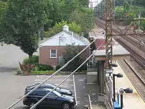 Riverside station is a commuter rail stop on the Metro-North Railroad's New Haven Line, located in the Riverside area of Greenwich, Connecticut. The Riverside Avenue Bridge crosses over the west end of the station platforms. The station has two high-level side platforms each six cars long.[3]: 20 It has 324 parking spaces, 307 owned by the state.[4]