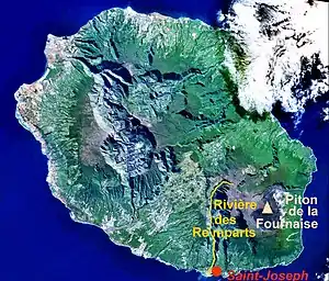 The Rivière des Remparts is a river on the Indian Ocean island of Réunion. It is 27.1 km (16.8 mi) long.[1] It flows south from the slopes of the Piton des Songes, in a deep caldera along the Piton de la Fournaise, reaching the sea at the town of Saint-Joseph. It forms part of the Rivière des Remparts – Rivière Langevin Important Bird Area.[2]