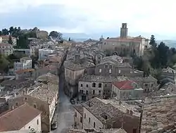 Cupra Marittima belongs to the district of the Riviera delle Palme of the lower Marche coast.[13] Besides the seashore, three hills define the city landscape; the Hill of Sant'Andrea houses the renovated fortress of Sant'Andrea; the Hill of Marano where the medieval town hall is located; and the Hill of Boccabianca.[14]