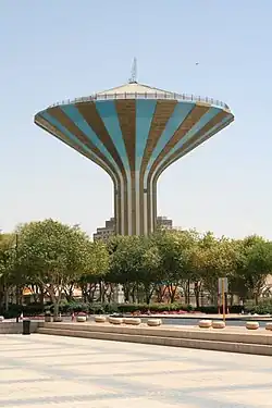 Riyadh Water Tower (Arabic: برج مياه الرياض), locally known as Burj al-Khazzaan (Arabic: برج الخزان, lit. 'the reservoir tower') or simply al-Khazzaan (Arabic: الخزان, lit. 'the reservoir'),[1] is a 61-meters tall conical-shaped cylindrical water tower and a prominent cultural landmark in the al-Futah neighborhood of Riyadh, Saudi Arabia.[2] Designed by Swedish architect Sune Lindström and modeled after the Svampen water tower in Örebro, Sweden, it was the tallest structure in the country at the time of its inauguration in 1971.[3]