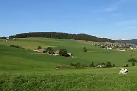 ![]() The Rossberg above the village of Breitnau (r). Seen from Hinterdorf to the southwest. | |