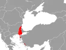 It is historically found in Turkey and south-eastern Bulgaria, with its presence recently confirmed in Greece. As oak and walnut trees were removed for agriculture and forestry, its distribution became restricted to a few small spinneys in Edirne, in north-west Turkey.[2] In 2017 the species was confirmed to be still living in Bulgaria.[3]
