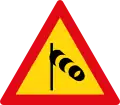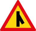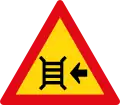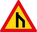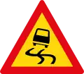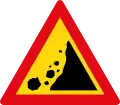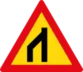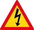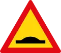 A white background signifies the sign is permanent, while a yellow background signifies that the sign is temporary. Warning signs are an upwards-pointing red triangle and contain a black pictogram describing the danger or obstruction. Speed limit signs are a red circle with the limitation in black. South Africa drives on the left.