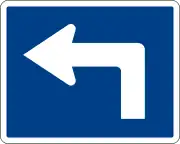 With the exception of the special designs used for Stop, Yield, and No Entry signs, mandatory signs (e.g., Must Turn Left) are round with a blue background, white border, and a white pictogram. Those which express a prohibition (e.g., No Left Turn) show the pictogram crossed out by a red diagonal bar. This is in accordance with the Vienna Convention on Road Signs and Signals (Type A variants).[3][4]