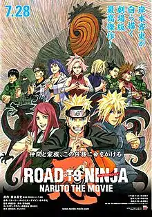 Road to Ninja: Naruto the Movie is a 2012 Japanese animated film based on Masashi Kishimoto's manga and anime series.[1] It was released in Japan on July 28, 2012.[2][3] The band Asian Kung-Fu Generation performed the theme song "Sore de wa, Mata Ashita" (それでは、また明日, lit. "Well Then, See You Tomorrow").[4] Both the single CD and the film's soundtrack were released on July 25, 2012.[5][6] The first 1.5 million people to see the film were given the Motion Comic: Naruto DVD.[7]