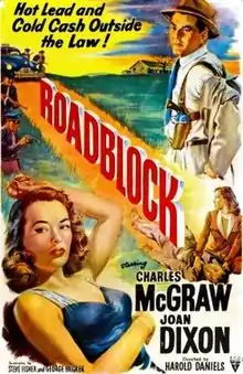 Roadblock is a 1951 American film noir starring Charles McGraw and Joan Dixon. The 73-minute crime thriller was shot on location in Los Angeles. The film was directed by Harold Daniels and the cinematography is by Nicholas Musuraca.