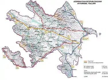 | M6 | Hajiqabul – Şirvan – Bəhramtəpə – Horadiz – Zəngilan – Armenia (closed) | 290 km | ||