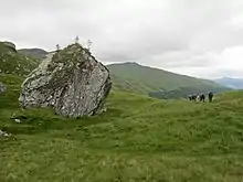 The year 1723 saw the publication of a fictionalised account of his life, The Highland Rogue.[12][13] Rob Roy became a legend in his own lifetime, and George I was moved to issue a pardon for his crimes just as he was about to be transported to the colonies. The publication of Rob Roy, by Sir Walter Scott in 1817, further added to his fame and fleshed out his biography. Hector Berlioz was inspired by the book to compose an overture. William Wordsworth wrote a poem called "Rob Roy's Grave" during a visit to Scotland.[14] (The 1803 tour was documented by his sister Dorothy in Recollections of a Tour Made in Scotland. The editor of the book changed the place of burial to the present location.)