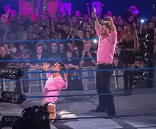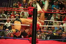 On the edition of 16 December of Impact!, Terry turned heel, costing Mr. Anderson and Matt Morgan their match against Jeff Hardy and Kazarian.[31] The following week, he was recruited by Ric Flair to serve as the bodyguard of Fortune.[32][33] On 13 February 2011 at Against All Odds, Terry wrestled his first pay-per-view match in seven months when he teamed with his Immortal stablemates Gunner and Murphy and faced James Storm, Robert Roode and Scott Steiner in a losing effort.[34] Terry then began feuding with Steiner, attacking him on the edition of 24 February of Impact! during a posedown between the two.[35] The following week, Steiner defeated Terry in a singles match to end the feud.[36] Two weeks later, Terry was given an opportunity to regain the vacated TNA Television Championship in an all–Immortal three-way match, which also included Murphy and Gunner, who would ultimately go on to win the title.[37] On the edition of 21 April of Impact!, Terry and Murphy unsuccessfully challenged Beer Money, Inc. for the TNA World Tag Team Championship in a steel cage match.[38] On the edition of 5 May of Impact!, Terry was kicked out of Immortal, despite defeating Murphy in a "Loser Leaves Immortal" match.[39]