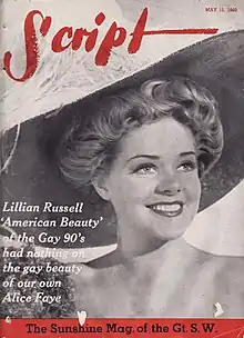 The Wagners founded Script in February 1929 and enlisted noted writers and film people to contribute articles without pay.[3] Edgar Rice Burroughs, Walt Disney, William Saroyan, Ogden Nash, Dalton Trumbo, Chaplin, Hughes, William DeMille, Ray Bradbury, Leo Politi and Stanton MacDonald-Wright among others wrote for the magazine. Bradbury was a regular contributor with a series of short stories from about 1940 through 1947. MacDonald-Wright provided art reviews. Gladys Robinson, wife of actor Edward G. Robinson, wrote a Hollywood gossip column. Script was liberal, witty and fond of tweaking the noses of the country's movers and shakers.