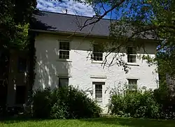 The Robb House and Spring House are historic buildings located west of Bellevue, Iowa, United States. They are two of over 217 limestone structures in Jackson County from the mid-19th century, of which 101 are houses. The residence is similar to most of the other houses in that it is a two-story structure that follows a rectangular plan, a symmetrical three bay facade, and is capped with a gable roof. It differs from most of the others in that it has heavy timbers for the lintels rather than stone, and it was stuccoed.[2] The stucco may have been influenced by the Luxembourgian houses in the region. The small, single-story, spring house appears to be from the same time period as the residence. It is square and capped with a hip roof. They are believed to have been designed for John Robb by Elbridge G. Potter, who settled along the Big Mill Creek in 1842, an area he called "Paradise Valley." The buildings were listed together on the National Register of Historic Places in 1991.[1]