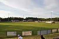 In 2009, after the arrival of the Muskrats was announced, the field underwent extensive renovations to comply with NECBL standards. The outfield fences were pushed back to 340 feet down the lines and 370 feet in the gaps. Additionally, a press box was constructed atop the existing concession stand[3] and bleachers and dugouts were expanded.[1]