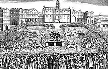 Robert-François Damiens (French pronunciation: [ʁɔbɛʁ fʁɑ̃swa damjɛ̃]; surname also recorded as Damier; 9 January 1715 – 28 March 1757) was a French domestic servant whose attempted assassination of King Louis XV in 1757[1] culminated in his public execution.[2] He was the last person to be executed in France by dismemberment, the traditional form of death penalty reserved for regicides.