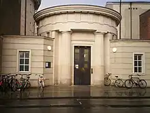 Adam designed Oxford University’s Sackler Library, which opened in 2001 and incorporated Oxford's Ashmolean Museum collections. The principal building is a circular library, with a smaller circular entrance onto the street, and attached wings arranged around internal courtyards. His design referenced ancient Greek architecture, specifically the Temple of Apollo at Bassae.[12]