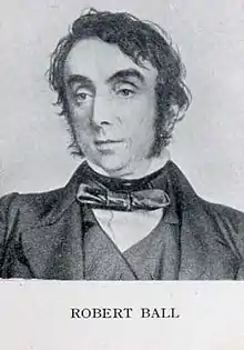 Robert Ball (1 April 1802 - 30 March 1857) was an Irish naturalist. He served as the Director of the Dublin University Museum, and developed a method of dredging known as "Ball's dredge."[1] He served as a secretary to the Royal Zoological Society of Ireland for two decades and was responsible for popularizing natural history through public educational outreach.