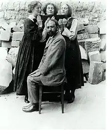 Burns was associated with Patrick Geddes' Fin de Siècle Scottish cultural revival. He contributed illustrations to all four volumes of The Evergreen: A Northern Seasonal published by Patrick Geddes and Colleagues between 1895 and 1897.[4][5][6][7] His Natura Naturans, which appeared in The Book of Winter in 1895 is believed to have influenced Gustav Klimt's Fishblood (1898).[8] He also designed costumes for Geddes' historical pageants.