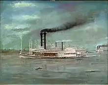 Robert E. Lee, nicknamed the "Monarch of the Mississippi," was a steamboat built in New Albany, Indiana, in 1866 (Not to be confused with the second 1876–1882 and third 1897–1904 Robert E Lee). The hull was designed by DeWitt Hill, and the riverboat cost more than $200,000 to build.[2] She was named for General Robert E. Lee, General in Chief of the Armies of the Confederate States. The steamboat gained its greatest fame for racing and beating the then-current speed record holder, Natchez, in an 1870 steamboat race.[3][4]