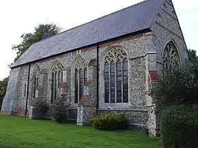 The crusaders remained in Egypt until August 1221. But Fitzwalter had gone home sick, probably at some earlier period. He spent the rest of his life peaceably in England, thoroughly reconciled to the government of Henry III. He must have by this time become well advanced in years. On 11 February 1225 Fitzwalter was one of the witnesses of Henry III's third confirmation of the great charter. In June 1230 he was one of those assigned to hold the assize of arms in Essex and Hertfordshire.[10] According to Matthew Paris, he died on 9 December 1235,[lower-alpha 1] and was buried before the high altar at Priory Church in Little Dunmow. Administration of his goods and chattels was granted to his executors on 16 December 1235. He was described by Paris as a "noble baron, illustrious by his birth, and renowned for his martial deeds".[10]