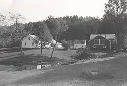 The former Frost Farm is located in southern Shaftsbury, a rural community in southwestern Vermont, on the south side of Buck Hill Road, roughly midway between United States Route 7 and Vermont Route 7A. It consists of 153 acres (62 ha) with a mix of fields and woods, with the main farm complex set on a drumlin with views to the north. The main house is a 1-1/2 story Cape, built about 1790, but altered somewhat by Frost after his purchase, and further altered by later owners. Also on the property are a barn and two smaller frame structures, the latter both used by Frost as writing studios.[3]