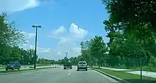 In July 2003, a $2.6 million upgrade to the Carolina Bays Parkway interchange began, providing additional access to Carolina Forest. An unpaved road called International Drive connected to S.C. 90, but provided no access to other main roads.[17] A year later, the road still had not been paved,[18] but by 2009 there was a plan to do so,[19] though as of 2016 the project was still delayed.[20] Grissom Parkway had become very popular with tourists, people living in the area, and businesses looking for a good location. However, the city did not intend the road to provide easy access to business, and policies assured this would continue to be the case.[18] International Drive officially opened July 25, 2018.[21]