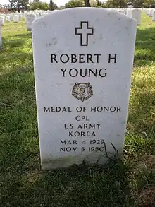 Robert Harley Young[1] (March 4, 1929 – November 5, 1950) was a soldier in the United States Army during the Korean War. He posthumously received the Medal of Honor for his actions on October 9, 1950, during the UN offensive into North Korea, and was promoted to the rank of Corporal. Young is buried at Golden Gate National Cemetery in San Bruno, California.