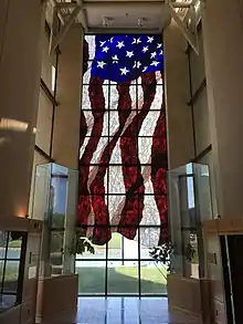 - The Old Glory in Stained Glass is a 29-foot (8.8 m) stained-glass American flag. It is believed to be the largest stained-glass flag in the world.[15][16] The display is a gift from University of Kansas alumni Forrest and Sally Hoglund.