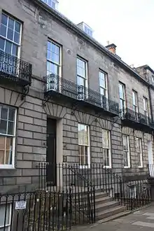 He had been in ill-health for some time and the death of his daughter early in December 1903 worsened his condition and he died at home, 18 Rothesay Place in Edinburgh’s West End,[8] on Wednesday 23 December 1903.[1] He is buried with his wife Joanna in Dean Cemetery in Edinburgh.[9] The grave lies on the southern path of the Victorian north extension, close to the link to the original cemetery. Their grandson Sir James Blair-Cunynghame (1913-1990) lies with them.