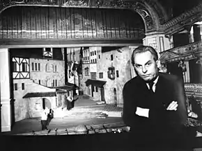 For many years he assisted the legendary set designer Alfred Roller and was jointly responsible for the decorations for Feuersnot by Richard Strauss in March 1922. In December of the same year, his first independent set had its premiere, Engelbert Humperdinck's fairy-tale opera Hänsel und Gretel, staged by Woldemar Runge and conducted by Richard Strauss.[3] He had a long-standing collaboration with the composer and conductor, both in Vienna, where Kautsky set Arabella, Ariadne auf Naxos and the Der Rosenkavalier, among others, and in Salzburg. Like Strauss, Kautsky was active in Vienna and Salzburg throughout all the system changes – from the first Austrian Republic to the Ständestaat and the Anschluss to the Second Austrian Republic. It is not known how far he came to terms with the Nazi regime.[4]