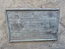 Keayne died in 1656 and is buried in the King's Chapel Burying Ground where a plaque has been affixed to his brick burial vault. Another memorial plaque, placed in 1925, honors Keayne in downtown Boston, on the corner of State and Washington Streets.[12] Each year on the first Monday in June the Ancient and Honorable Artillery Company leads a procession to the gravesite, laying a wreath in Keayne's memory.[13]
