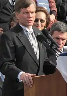 McDonnell was elected governor of Virginia after using the campaign slogan "Bob's for Jobs."[2] He defeated Democratic state Senator Creigh Deeds by a 17-point margin in the 2009 general election, which was marked by the severe recession of the late 2000s. McDonnell succeeded Democrat Tim Kaine, who was term-limited by Virginia law.[3][4]