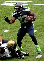 On April 28, 2012, Turbin was selected by the Seattle Seahawks in the fourth round with the 106th overall pick in the 2012 NFL Draft.[15] That year, he and Bobby Wagner became the highest-drafted pair of USU players since 1980.[16] Playing as a backup to Marshawn Lynch, Turbin ran for 354 yards on 81 carries in his rookie season.[17] In Week 14 against NFC West rival Arizona, Turbin got a significant number of carries in the second half thanks to a blowout, and would have his first career 100 yard game, getting 108 yards on 20 carries in a 58–0 victory.[18]