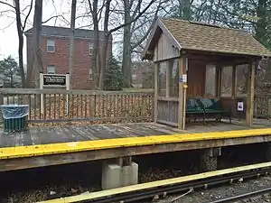 Roberts Road station, formerly Rosemont station, is a SEPTA rapid transit station in Rosemont, Pennsylvania. It serves the Norristown High Speed Line (Route 100) and is located at Roberts Road and David Drive in Radnor Township, Pennsylvania.[1] Local, Hughes Park Express, and Norristown Express trains stop at Roberts Road. The station lies 5.9 track miles (9.5 km) from 69th Street Terminal.