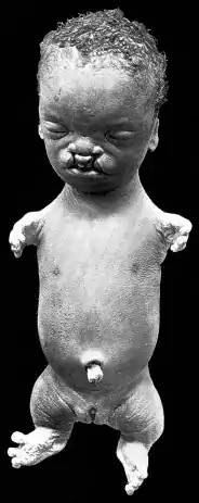 An example of a severely affected Roberts syndrome Patient - Hypomelia (hypoplasia)- the incomplete development of a tissue or organ; less drastic than aplasia, which is no development at all